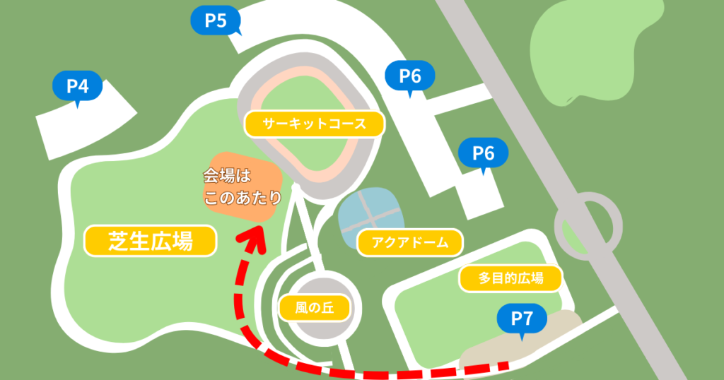 我が家は第7パーキングに車を停めて芝生広場を目指しました。