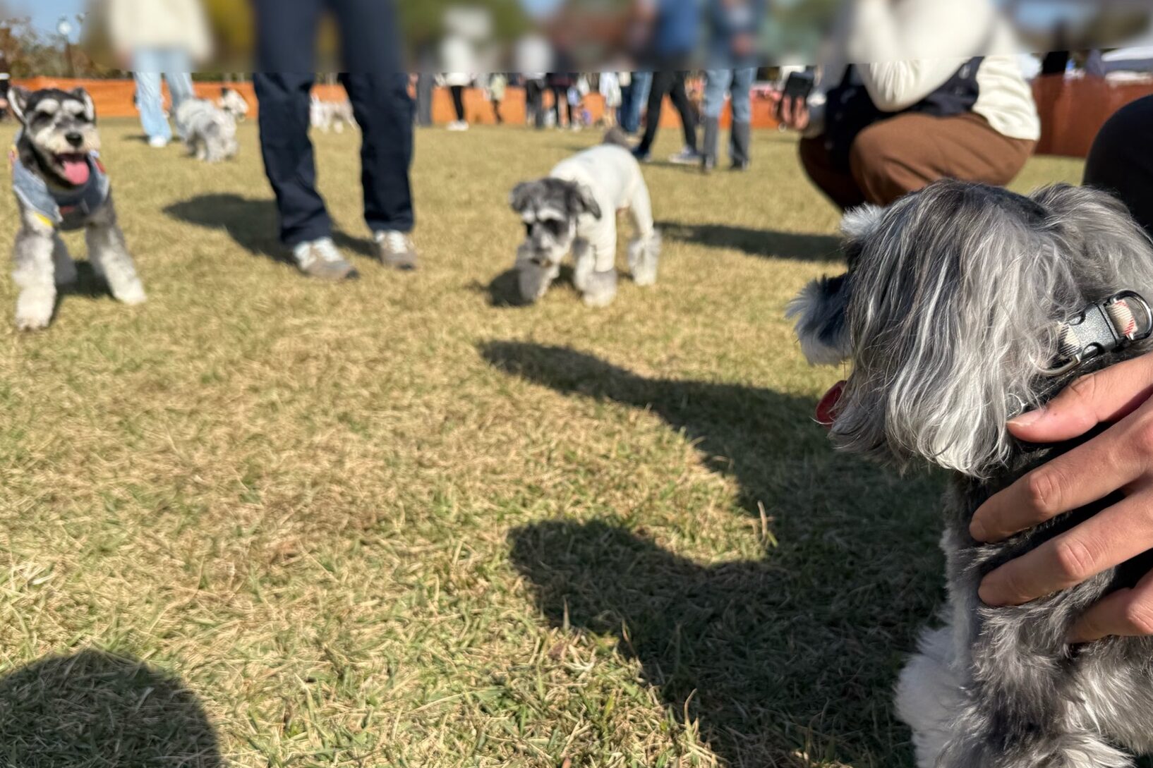 広い&シュナだらけということもあり、我が愛犬を見失わないように必死な飼い主たち。